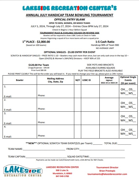 To secure your spot in this exhilarating event, act now! Call Lakeside at 847-949-5700 or reach out to our Tournament Director at Tournaments@lakesidereccenter.com. Don't miss out on the chance to be part of the action!